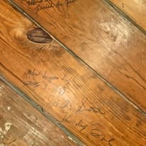 While putting the shingles on the roof of the present church, Guy Smith, Carl Smith, and King Boswell were on a toe-board when it broke loose. Carl Smith has scars on his arm today from this experience. Clay Carver helped tear down the old church and roof the new church. Some of the wood that is in the building today came from the old church.